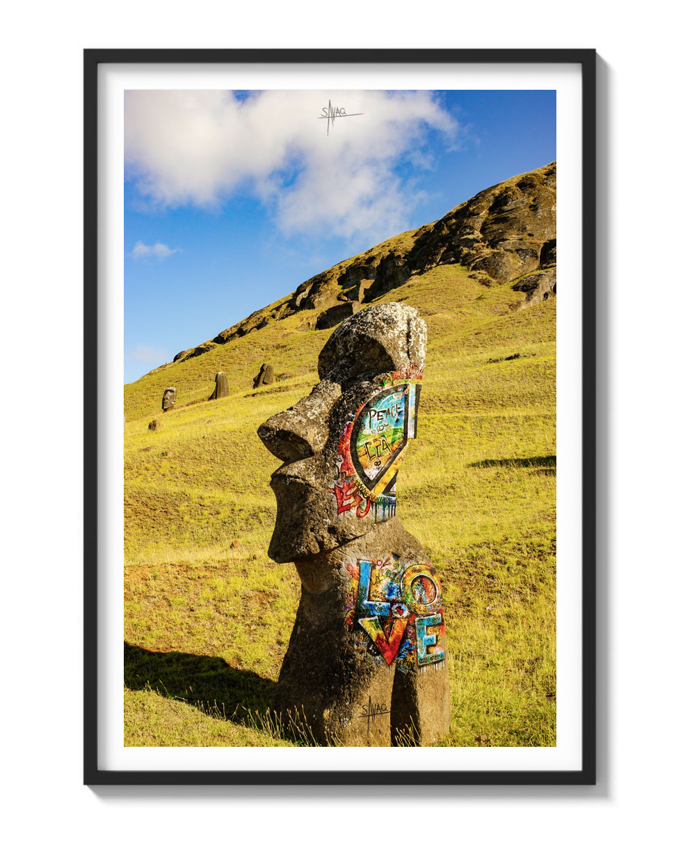 Moai, Easter Island, Graffitti. PHOTOGRAPHY + AI TECHNOLOGY